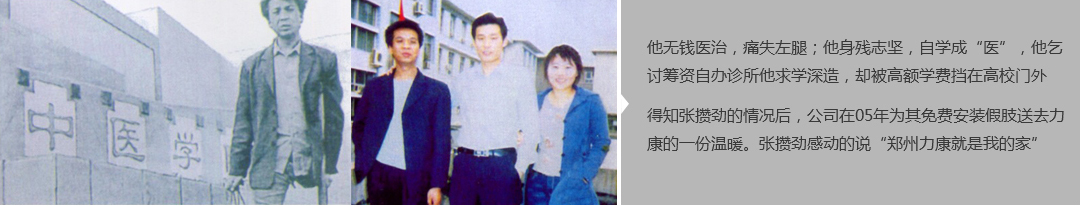 鄭州市力康假肢矯形器有限公司(簡(jiǎn)稱力康),是一家專業(yè)從事假肢矯形器的設(shè)計(jì)、研發(fā)、制作及裝 配的專業(yè)機(jī)構(gòu)。成立于1992年是河南省唯一一家福利企業(yè)。力康下設(shè)業(yè)務(wù)部、技術(shù)部、住院部、康復(fù) 部、售后服務(wù)部,并配有現(xiàn)代化的裝配車間和功能齊全的訓(xùn)練大廳,為殘疾朋友康復(fù)訓(xùn)練提供了可靠 保障。總經(jīng)理穿戴假肢多年,有著豐富的臨床經(jīng)驗(yàn)和親身體會(huì);多年來,力康已為全國(guó)幾十萬名殘疾 朋友安裝上舒適、美觀、耐用的假肢和矯形器具,使他們更大限度地恢復(fù)了正常的工作和生活?!爱a(chǎn) 品即人品”的質(zhì)量理念、先進(jìn)的技術(shù)、實(shí)惠的價(jià)格、完善的售后服務(wù)是力康取勝的法寶……